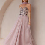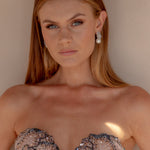 Beaded bodice in a strapless design